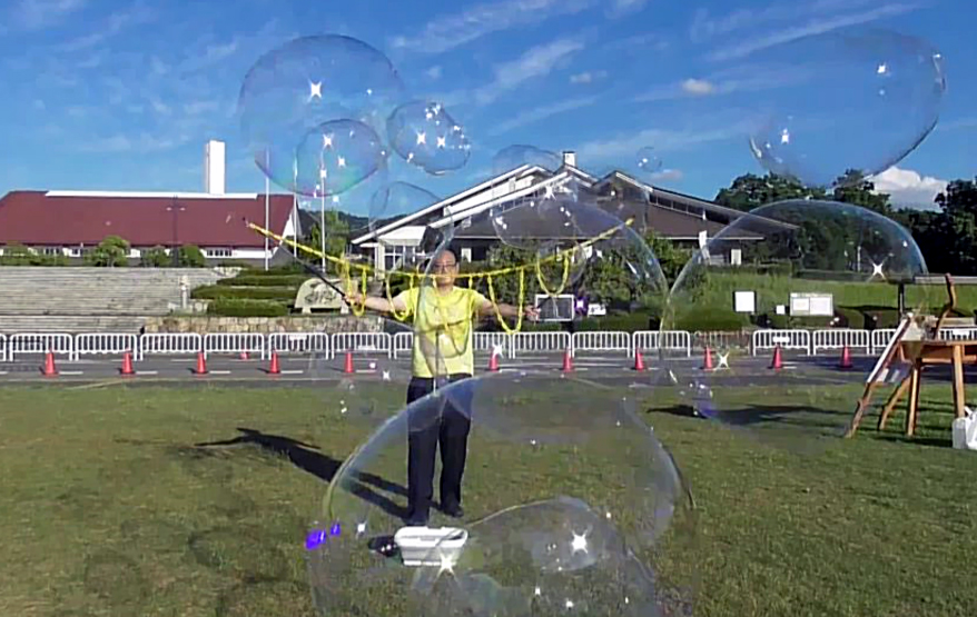 しゃぼんだまショーに向けて。 ブログ 2024.09.18 しゃぼんだまショーに向けて、試しに、しゃぼんだまを飛ばして来ました。 竿には、鎖は1本だけですが、もっと本数を増やして 本格的な、しゃぼんだまショーを目指します。