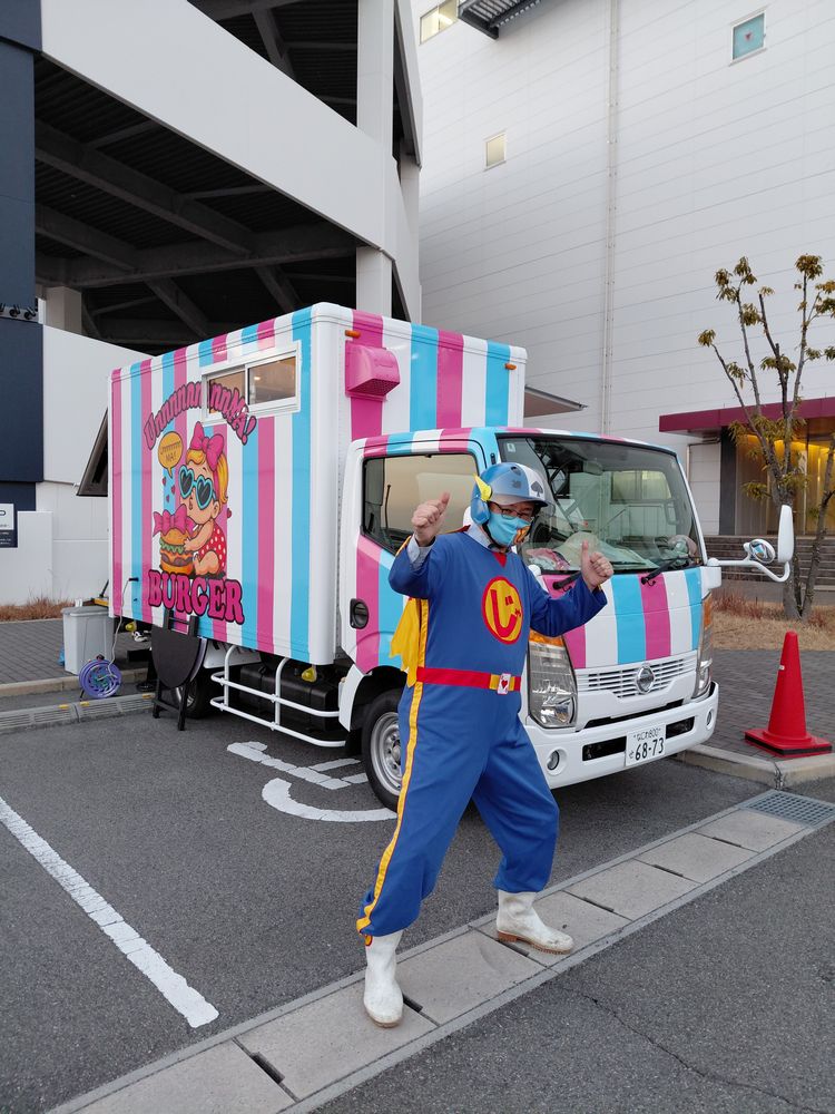 アレルギー&グルテンフリー ハンバーガー屋さんのキッチンカーにジャスパーマン出没(笑)