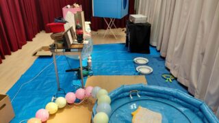 沢山の、こども達にとり囲まれて マジックを披露♪