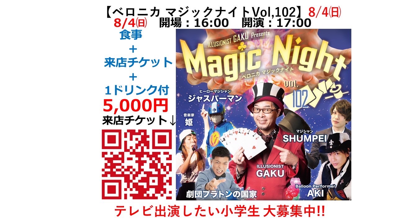 #イリュージョニストgaku #マジシャンgaku #ベロニカマジックナイト