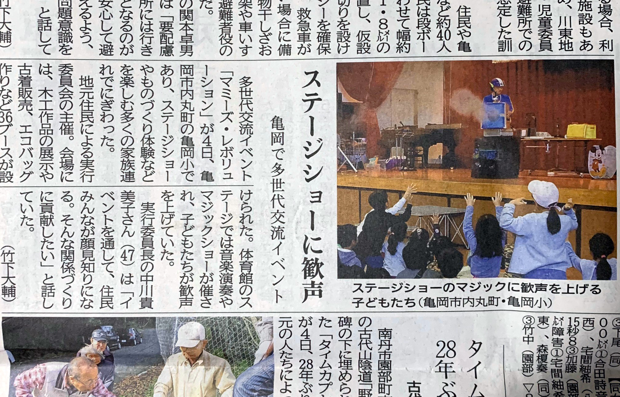 以前、京都府亀岡市での公演の様子が 京都新聞さんに掲載して頂きました。